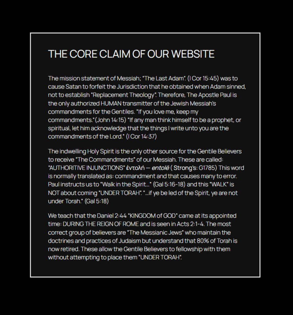 - Replacement Theology (“The True Church”) — which rejects The Last Adam by replacing Him with a being they describe as “Fully God and Fully Man,” the founder of a Gentile religious institution that demands Jews abandon Torah.