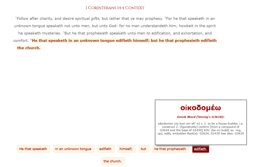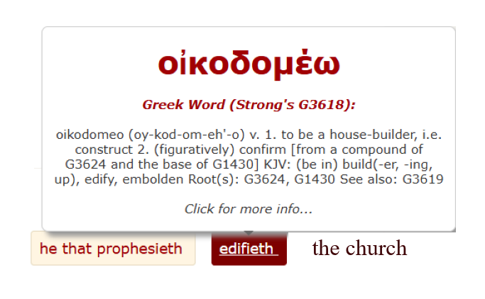 I Corinthians 14:4 passage explains that “DIRECT DIVINE REVELATION” is what will “…oikodomeo the church.” (EDIFY)