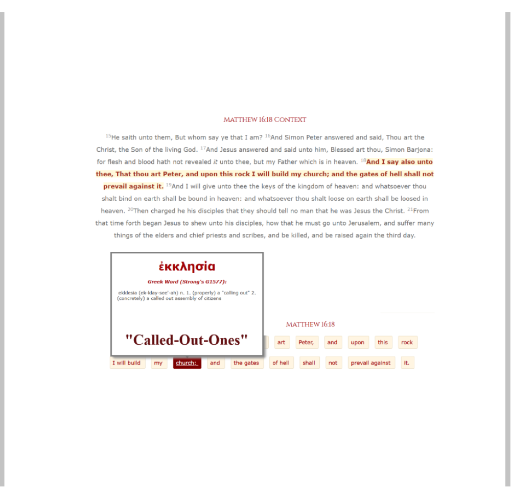 With this lens anyone can begin to understand the verse fragment: “…BUILD my CHURCH…” (Mattew 16:18) In the Greek translation of the first 39 Books called: “Septuagint”: G-1577 is the standard Greek translation for qāhāl (קָהָל) H-6951 and meant: The covenantal assembly of YHWH.