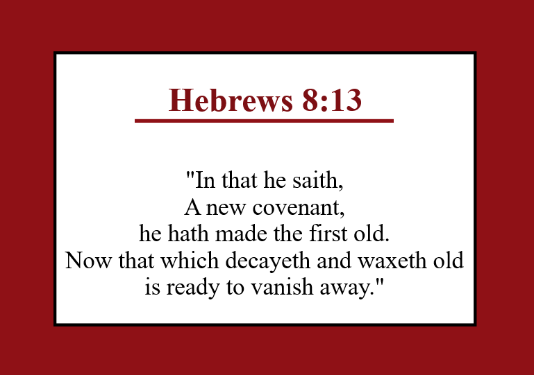 “In that He saith, A new covenant, He hath made the first old. Now that which decayeth and waxeth old is ready to vanish away.”
