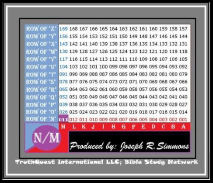 Begin with the number 13 and add 13 until reaching 169. These are the “M-Column” numbers. As seen in the image above. Each column works the same way, but with different starting numbers.