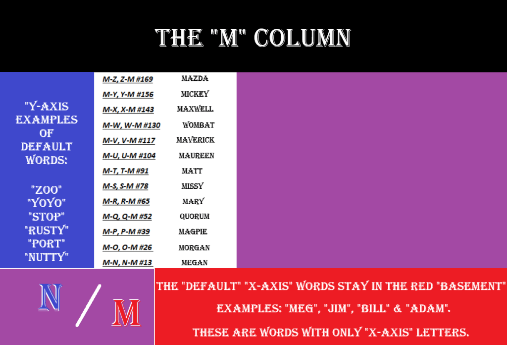 At the top of the “M-Column” is the passkey: “M/Z or Z/M”. “Mazda”, “Zoo” and “Zombie Movies” are three examples of possible “Memory Anchors” for the museum’s exhibit # 169.
