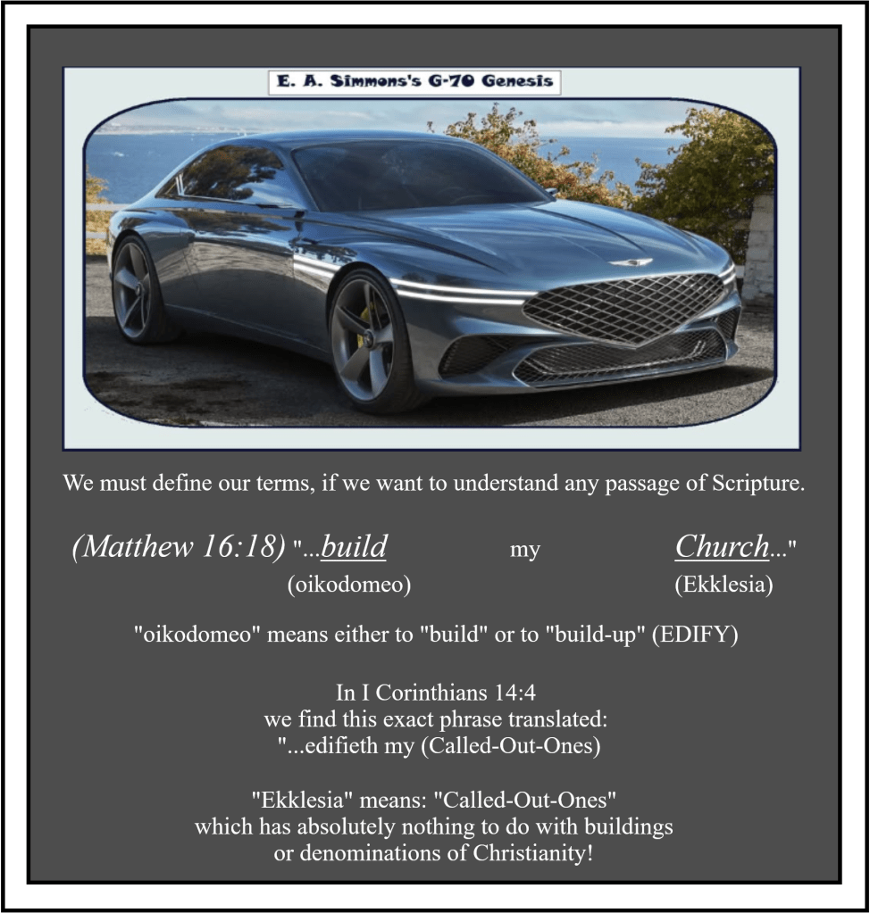 “My Called-Out-Ones”(Matthew 16:18) is our first Bible Study. You must clearly see that Christianity does not reach all the way back to 32 A.D. but to the day when Ignatius of Antioch received the idea, that he could detach himself from the Jewish sect that he had been trained in, and start his own religion.