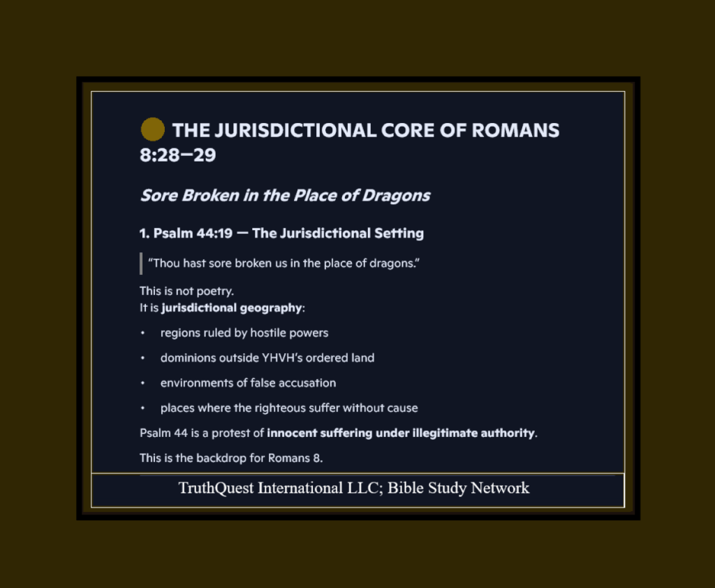 Romans 8:28–29 establishes the jurisdictional pattern through which YHVH overrides hostile dominions.
