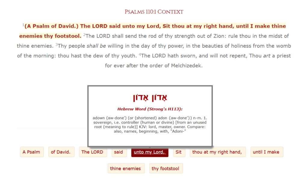 Psalm 110:1 “YHVH said unto my adoni, Sit thou at My right hand, until I make thine enemies thy footstool.”